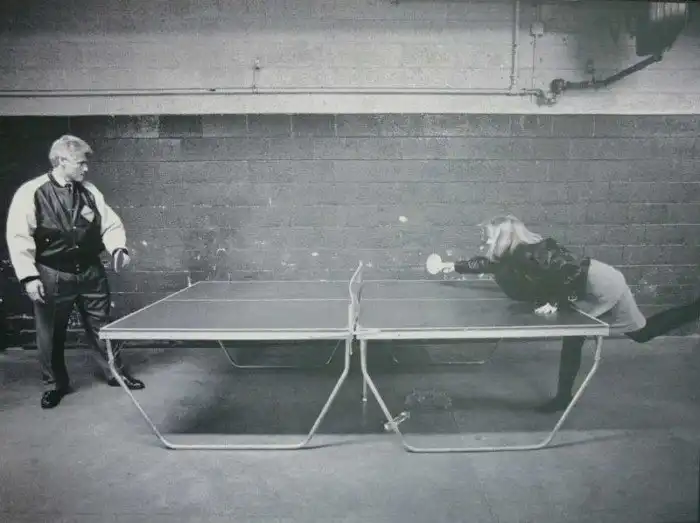 Билл Клинтон и его жена Хиллари играют в пинг-понг