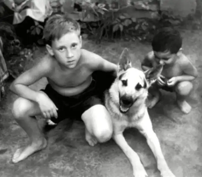 Актер и режиссер Владимир Петрович Баталов с сыном - будущим знаменитым актером Алексеем Баталовым. СССР. 1930 г.