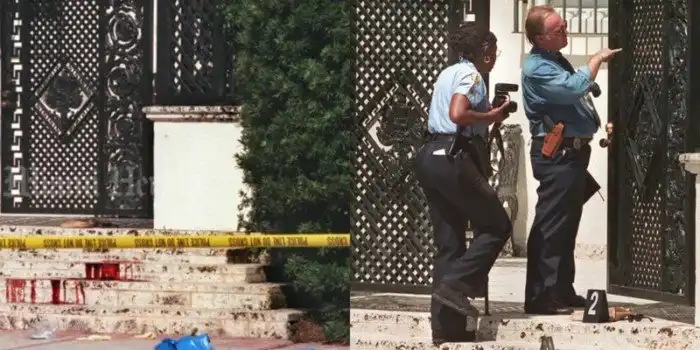 Версачи убили в двух шагах от его особняка в Майями-Бич. Он возвращался из соседнего кафе, куда пошел за свежими утренними газетами. Обычно это делал его помощник, но в то утро Версачи был в прекрасном настроении и решил прогуляться сам. Прогулка, увы, окончилась тем, что он истек кровью на ступенях собственного дома. Серийный убийца Эндрю Кунанан выстрелил в модельера дважды, а затем спокойно ушел. Через неделю он застрелился из того же пистолета.