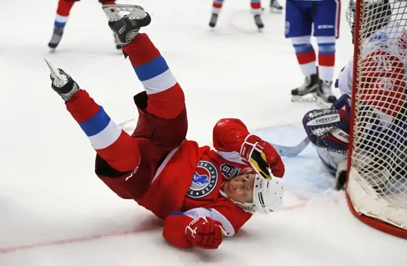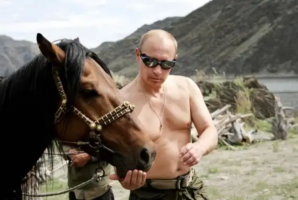 Признаться, никогда бы не решились опубликовать галерею таких снимков - уж больно на поверхности лежит тема. Но тут случайно наткнулись на одном очень популярном американском сайте на подборку "Сумасшедшая жизнь Владимира Путина", и подумали: а давайте дадим читателям Фишки посмотреть на президента глазами американцев.