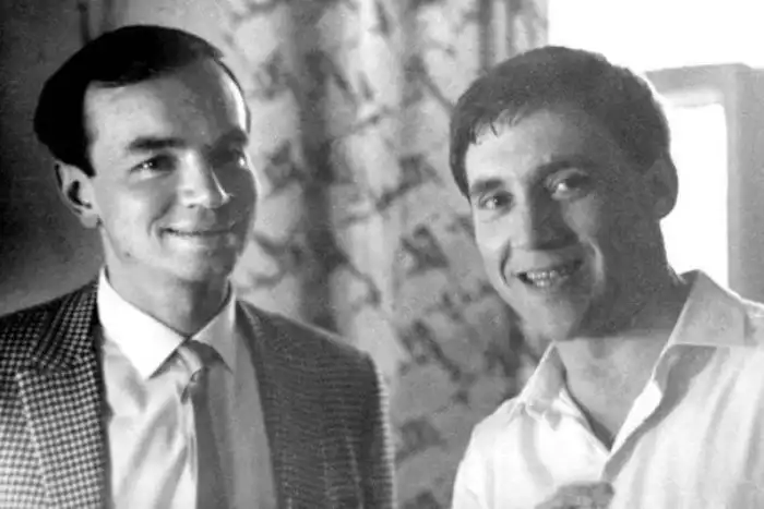 Андрей Вознесенский и Владимир Высоцкий в Москве. СССР, июнь 1967 года.