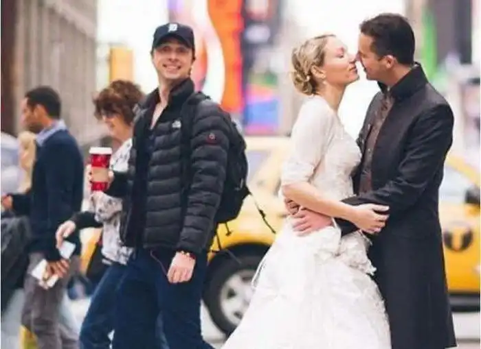 Молодой актер Зак Брафф идет по стопам Тома Хэнкса! Пока - только в сфере фотошуток. Но если он так же лихо постарается догнать его на профессиональном поприще, неведомые молодожены смогут продать эту шуточную фотографию за вполне приличные деньги!