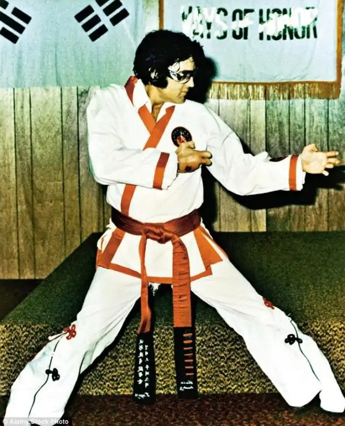 Элвис на тренировке по карате. Даже его кимоно отличались эксцентричностью