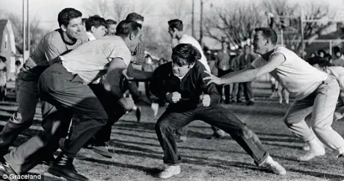Элвис на тренировке по американскому футболу, 1956 год