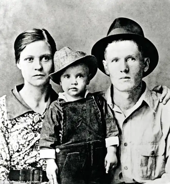 Двухлетний Элвис с отцом и матерью