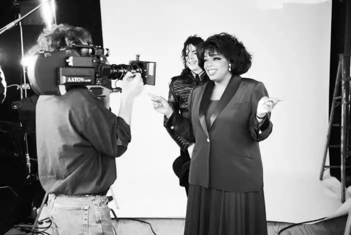 Майкл Джексон и Опра Уинфри на съемках в январе 1993 года. В этом году Джексона впервые обвинили в сексуальных домогательствах к несовершеннолетним, и в полуторачасовом шоу Опры он обратился к потерпевшим. Впоследствии обвинения с Джексона были сняты, но, по имеющимся сведениям, он выплатил 25 млн долларов, чтобы уладить это дело. (Neal Preston/Corbis)