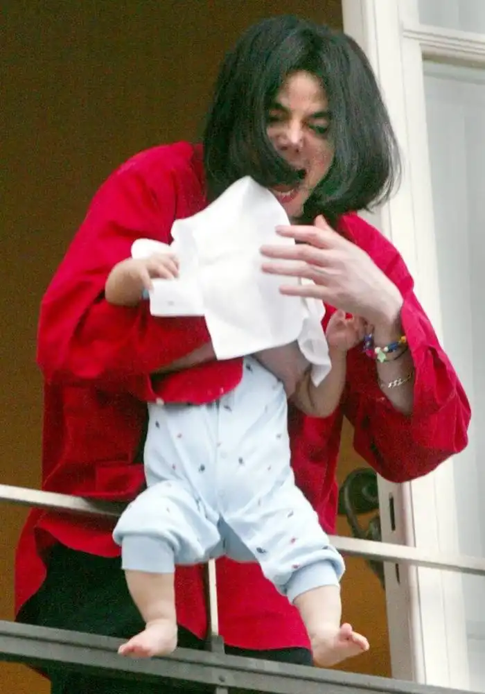 Джексон держит своего сына Принца Майкла II, накрытого полотенцем, стоя на балконе берлинской гостиницы 19 ноября 2002 года. Впоследствии Джексон назвал произошедшее «ужасной ошибкой», однако эта фотография потрясла даже самых преданных фанатов певца. Его репутации был нанесен необратимый урон. (Tobias Schwarz/Reuters)