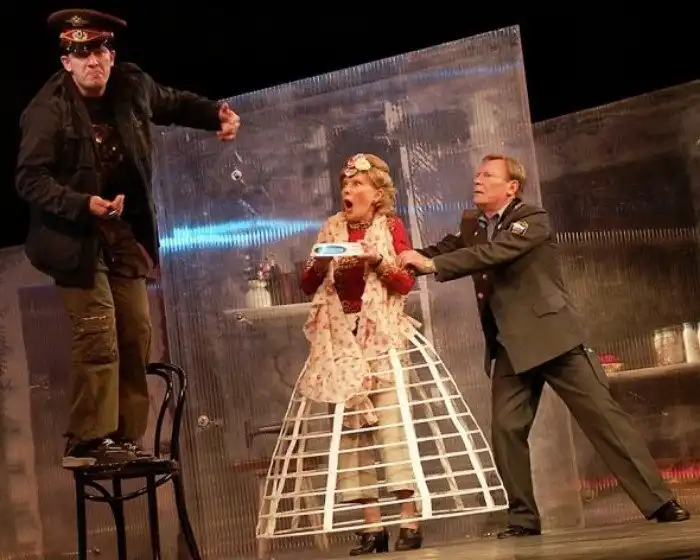 Дмитрий Марьянов, Людмила Гурченко, Сергей Шакуров (слева направо) в спектакле «Случайное счастье милиционера Пешкина». 2 июня 2004 года