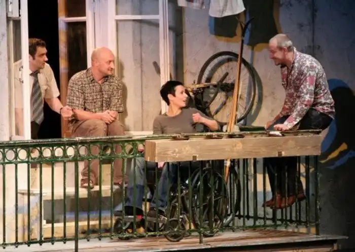 Константин Юшкевич, Гоша Куценко, Ирина Апексимова и Дмитрий Марьянов (слева направо) в спектакле «Игра в правду». 6 марта 2008 года