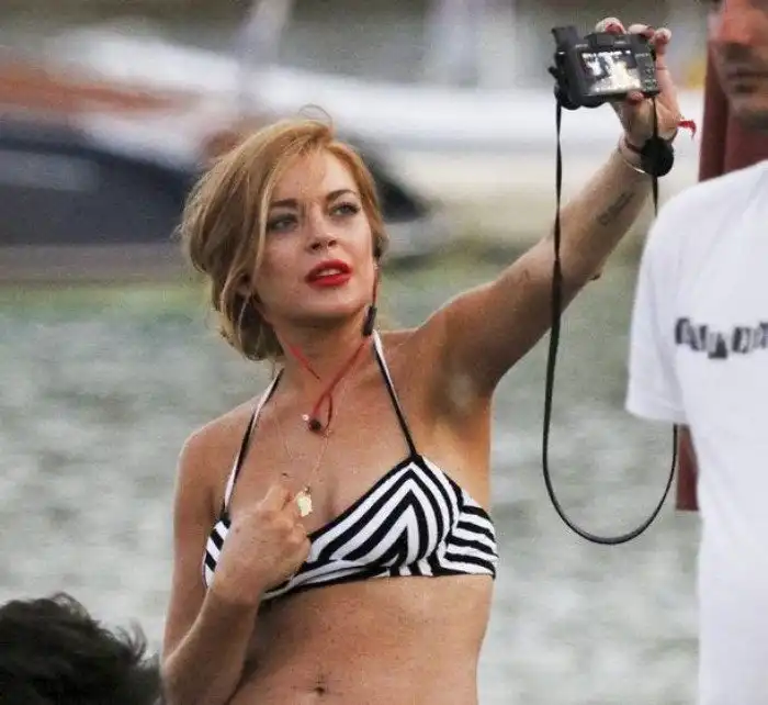 Отличный выбор купальника, надо заметить. Не каждая на такой решится - а вот Линдси Лохан может.
