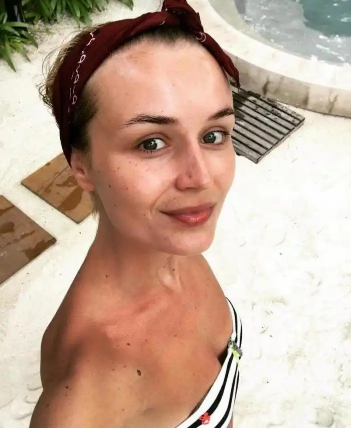 И даже без макияжа её лицо не сильно изменилось.