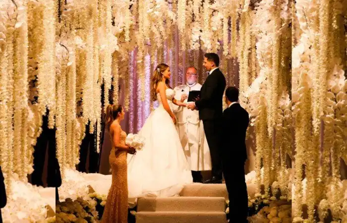 Одна из самых высокооплачиваемых американских телеактрис во второй раз вышла замуж в 43 года. Джо Манганьелло и София Вергара устроили роскошный праздник во Флориде, а к алтарю невесту вел ее 23-летний сын. Счастливая новобрачная выбрала для своего торжества платье от Zuhair Murad.