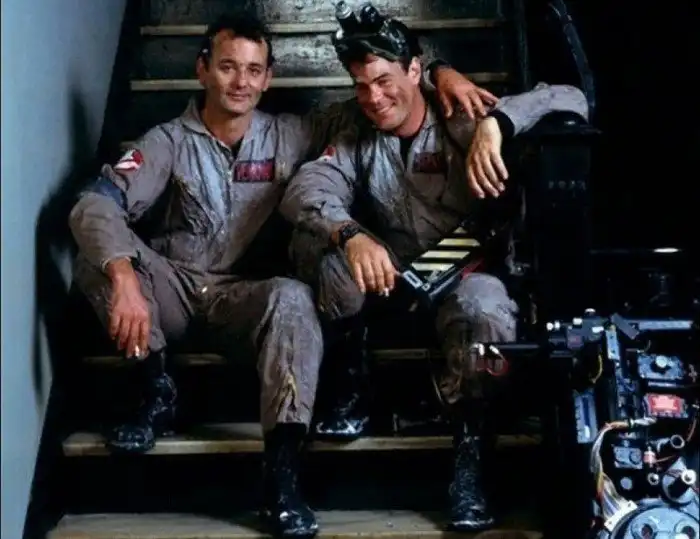 Билл Мюррей и Дэн Эйкройд на съемках «Охотников за привидениями», 1983 год.