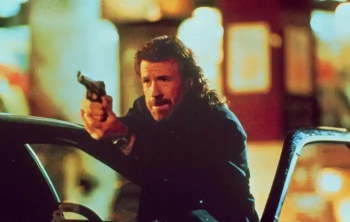 Чак Норрис на съёмках фильма «Агент» («The Hitman»), 1991