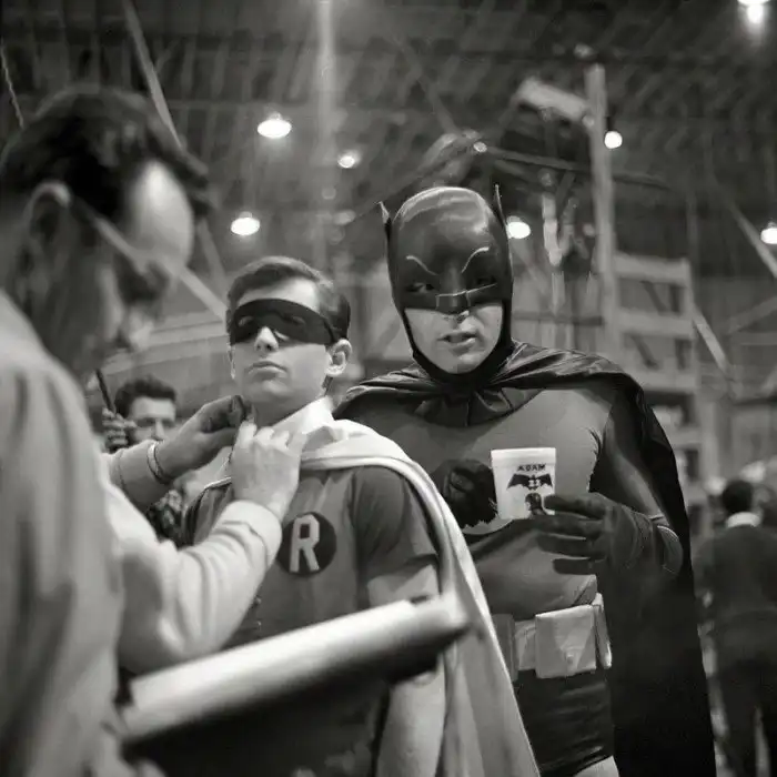 Супергеройский боевик Джоэла Шумахера, последний фильм в тетралогии о Бэтмене. Мировая премьера фильма состоялась 20 июня 1997. А это просто фрагмент между съемками. Поправляют плащ.