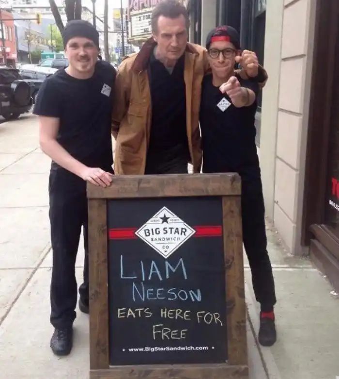 3. Магазин сэндвичей поставил на входе рекламный щит "Лиам Нисон ест здесь бесплатно". Ну, раз такое дело, Нисон решил зайти на огонек