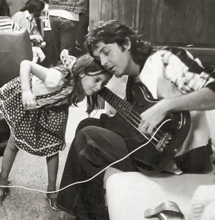 Мэри Маккартни слушает как папа играет на басу