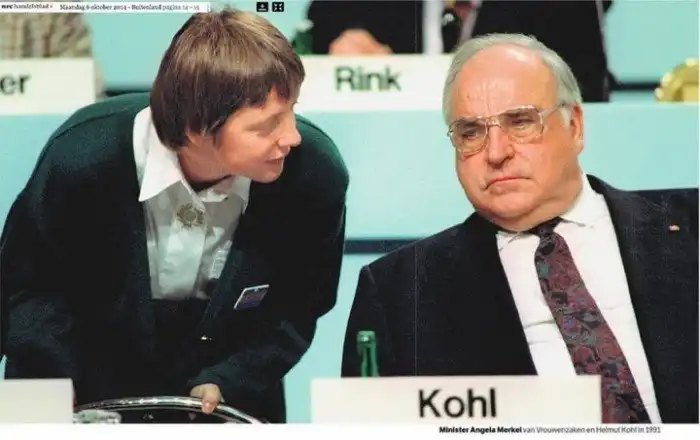 Министр по делам женщин Ангела Меркель и канцлер ФРГ Гельмут Коль. Германия. 1991г.