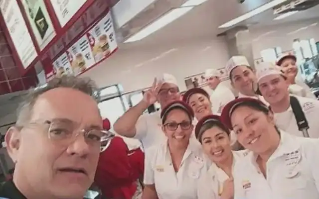 На днях известный актер Том Хэнкс зашел в ресторанчик под названием In-N-Out Burger в городе Фонтана, где не только вкусно отобедал, но еще и удивил всех гостей заведения.