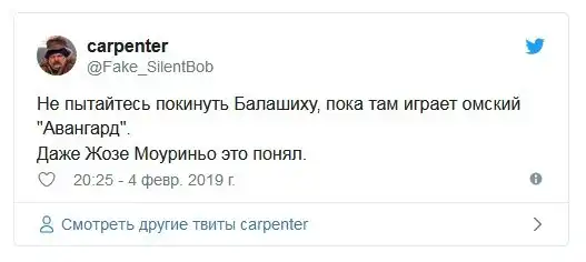 Во время проведении символического вбрасывания перед началом матча Континентальной хоккейной лиги футбольный тренер Жозе Моуринью упал на льду. Моуринью начал встречу между "Авангардом" и петербургским СКА в Балашихе (2:0), но не смог удержаться на ковровой дорожке.