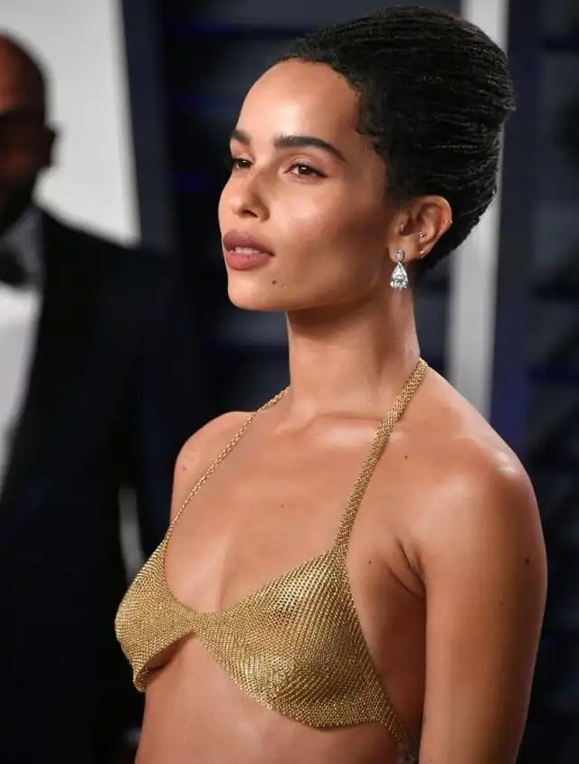 Дочь известного музыканта Ленни Кравица и актриса Зои Кравиц удивила всех своим откровенным нарядом, в котором она появилась на вечеринке после вручения премии "Оскар". На 30-летней Кравиц был надет золотой металлический топ, через который можно было увидеть ее обнаженную грудь. На вечеринку с Зои пришел ее ухажер - актер Карл Глусман.