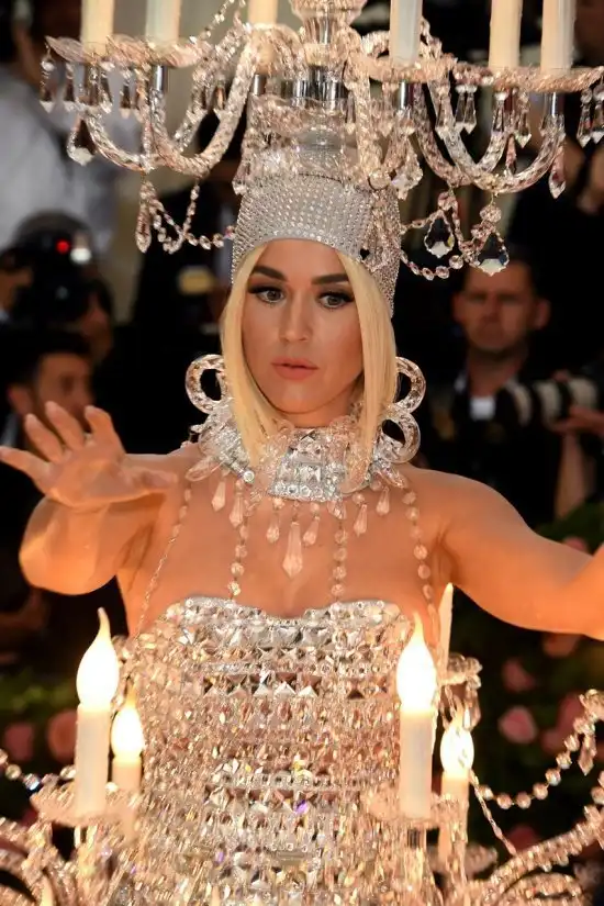 В Нью-Йорке прошел Бал Института костюма-2019, который каждый год удивляет странными и экстравагантными нарядами знаменитостей. В этом году на мероприятии все взгляды были прикованы к образу Кэти Перри, которая нарядилась люстрой, украшенной кристаллами и с искусственными свечами. Как вам нравится такая мода?