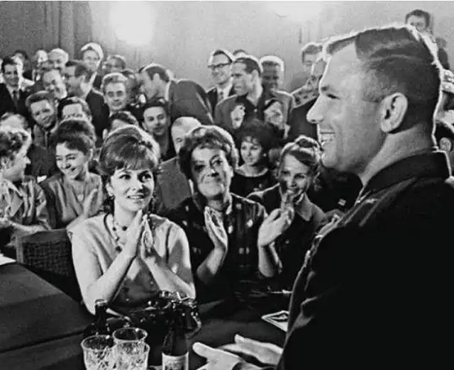 6. Восхищенная Джина Лоллобриджида смотрит на Гагарина, 1961 год