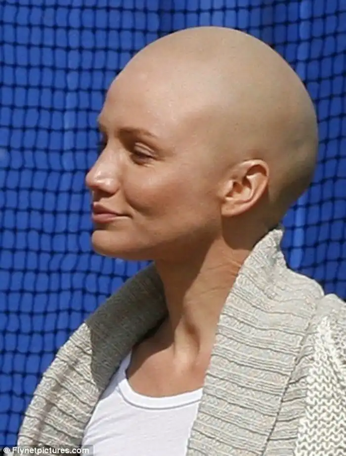 Кэмерон Диас в нашем списке занимает особое место: артистка немало удивила поклонников, когда как-то вышла на красную дорожку с бритой головой, а на следующий день уже щеголяла прежней шевелюрой. Как выяснилось, женщина сжульничала, использовав особые грим и парик для съемок. Справедливости ради, у Кэмерон было оправдание: в ленте «Хранитель моей сестры» кадров с безволосой Диас совсем мало, и съемки заняли лишь день!