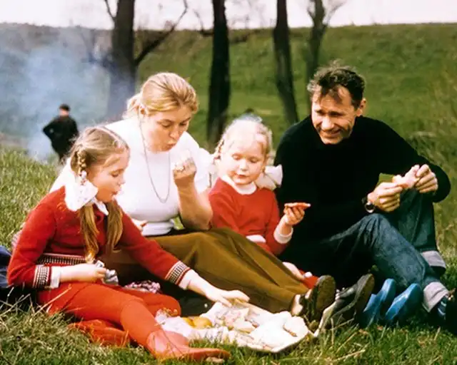 Василий Шукшин и Лидия Федосеева-Шукшина со дочерьми Марией и Ольгой (начало 70-х)