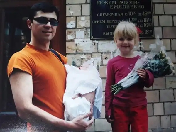 Евгений Евстигнеев с сыном Денисом и дочерью Машей (начало 90-х)