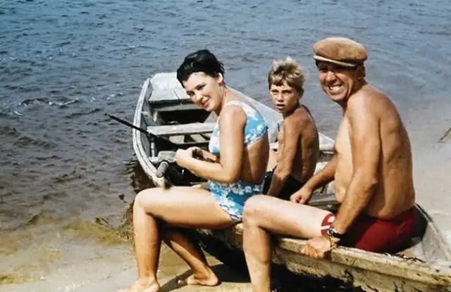 8. Юрий Никулин на отдыхе с женой и сыном Максимом