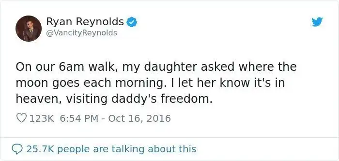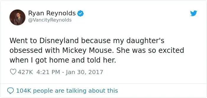 На самом деле Рейнольдс, разумеется, ничуть не сердится на малышей. Он очень любящий и ответственный отец, который относится к своим отцовским обязанностям со смирением и здоровым юмором. Доказательства этому можно найти на его странице в социальных сетях: