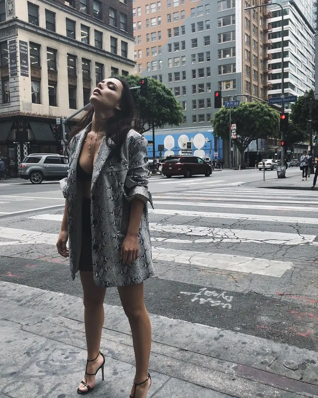 Ольга предстала перед поклонниками в черном белье и шортах в сеточку. Но их скорее не было, чем они были. На белье Серябкина накинула пиджак, который с удовольствием и снимала.