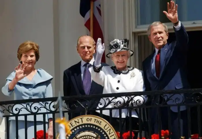 Елизавета II и 43-й президент США Джордж Буш младший (Джордж Уокер Буш)