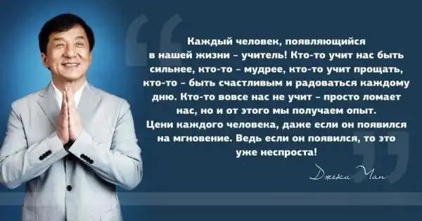 Джеки Чан не только руками-ногами горазд! Он ещё и умными мыслями умеет поражать.