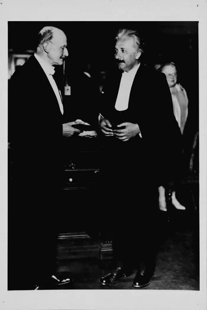 Физик Макс Планк вручает медаль имени Макса Планка Эйнштейну, 1929. Макс Планк стал основоположником квантовой физики.
