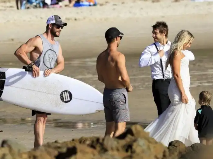 Заметил свадьбу на пляже Байрон-Бей, Австралия. Актёр проводил там свободное время, сёрфил и решил лично поздравить молодожёнов.