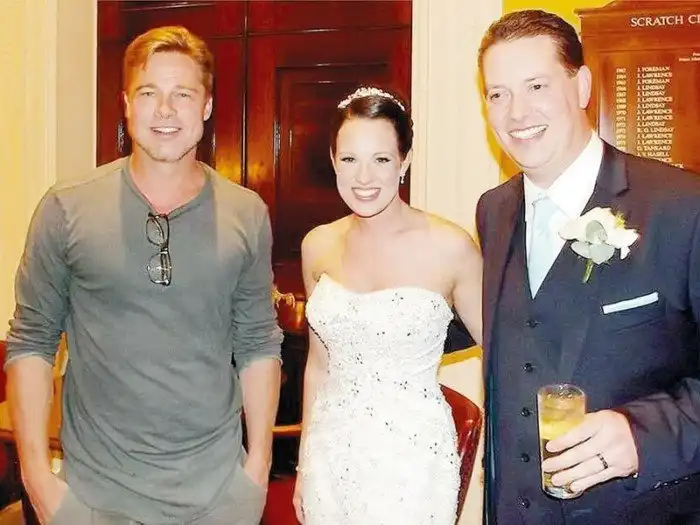 Почти как Траволта, только дело было в Великобритании. Жених наткнулся на Брэда в баре отеля прямо во время своей свадьбы (актёр же остановился там для съёмок в фильме «Ярость»). В итоге Питт появился на церемонии (все присутствующие чуть не сошли с ума) и немного попозировал со счастливыми молодожёнами.