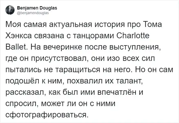 Перед вами несколько историй от счастливцев, которым довелось пересечься в этой жизни с душкой-Хэнксом.