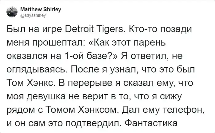 Некоторые люди, действительно сталкивались с актером в реальной жизни, после чего делились своими историями в Твиттере, и похоже, что Том Хэнкс может быть даже более удивительным, чем мы думали!