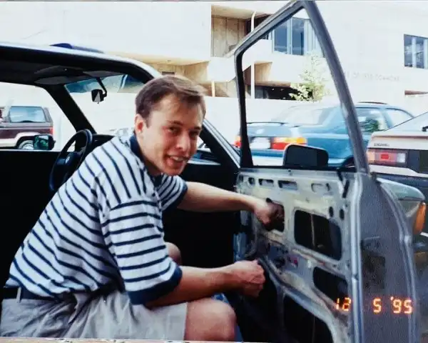 Мама изобретателя Мэй Маск выложила в твиттере фото 24-летнего сына. На снимке он чинит окно автомобиля. Оказалось, что в 1995 году воры разбили окно машины парня, чтобы украсть магнитолу. У Маска в то время не было денег ни на автомастерскую, ни элементарно на покупку нового стекла. Пришлось будущему изобретателю отправляться на автомобильную свалку и там искать недостающие части машины.