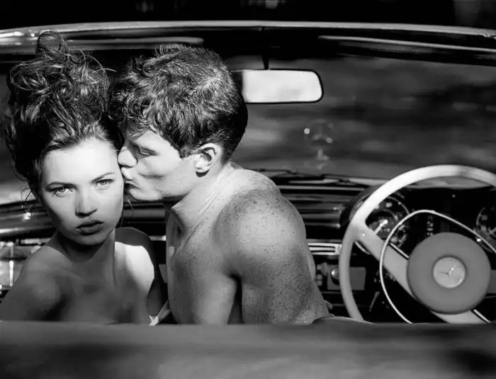 10. Кейт Мосс и Девид Хокни в его Мерседесе 280, 1988 год