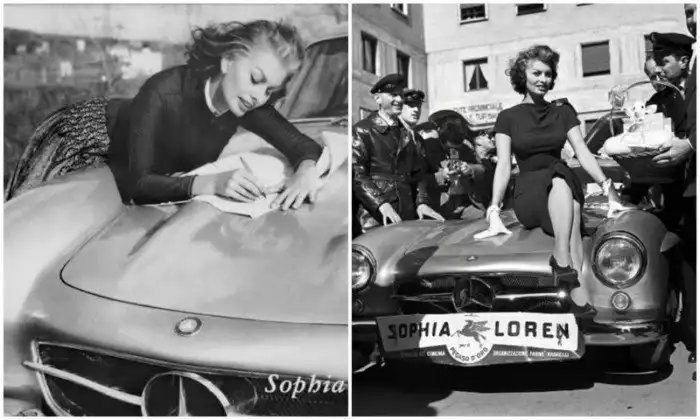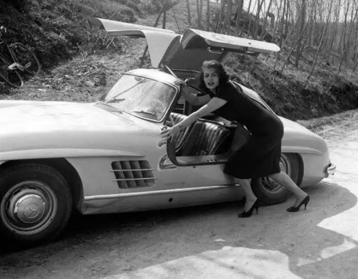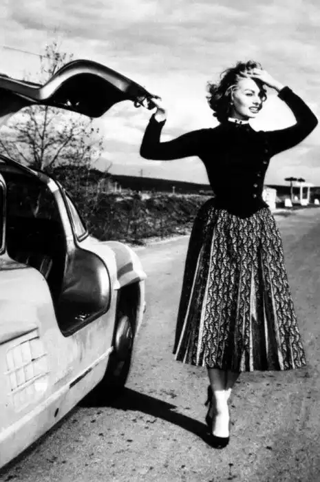 На этих ретро-фотографиях легендарная актриса Софи Лорен позирует со своим недавно выпущенным Mercedes-Benz 300SL в Риме. Снимки датируются 1956 годом.