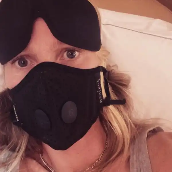А вот модель Хайди Клум даже в номере отеля лежит в маске