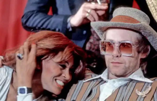 Тина Тернер и Элтон Джон на пресс-конференции, посвященной рок-опере «Томми», 1975