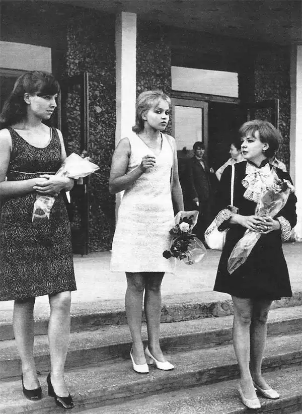Актрисы Ольга Остроумова, Ирина Шевчук и Екатерина Маркова на премьере фильма "А зори здесь тихие..."(1972)