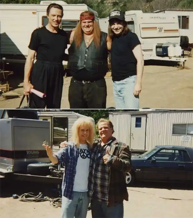 Кристофер Уокен, Крис Фарли и Майк Майерс на съемках фильма «Мир Уэйна 2».