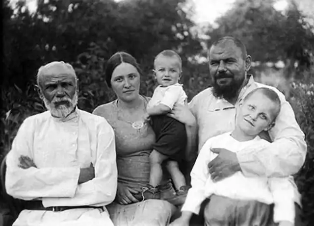 Малыш на руках у матери - это Николай Дроздов. Слева - дед Сергей Иванович, а справа - отец с братом Сергеем. Фото сделано в 1940 году.