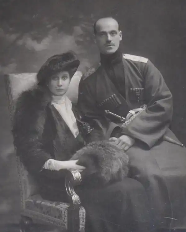 Командир Кавказской туземной (Дикой) дивизии Михаил Александрович с женой Натальей, Первая Мировая война.
