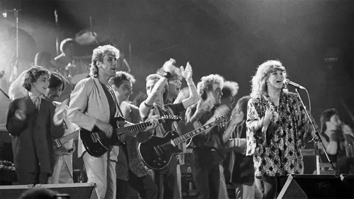 Певцы Владимир Кузьмин и Алла Пугачева в спорткомплексе «Олимпийский» во время концерта, средства от которого пойдут в фонд помощи пострадавшим от аварии на Чернобыльской АЭС